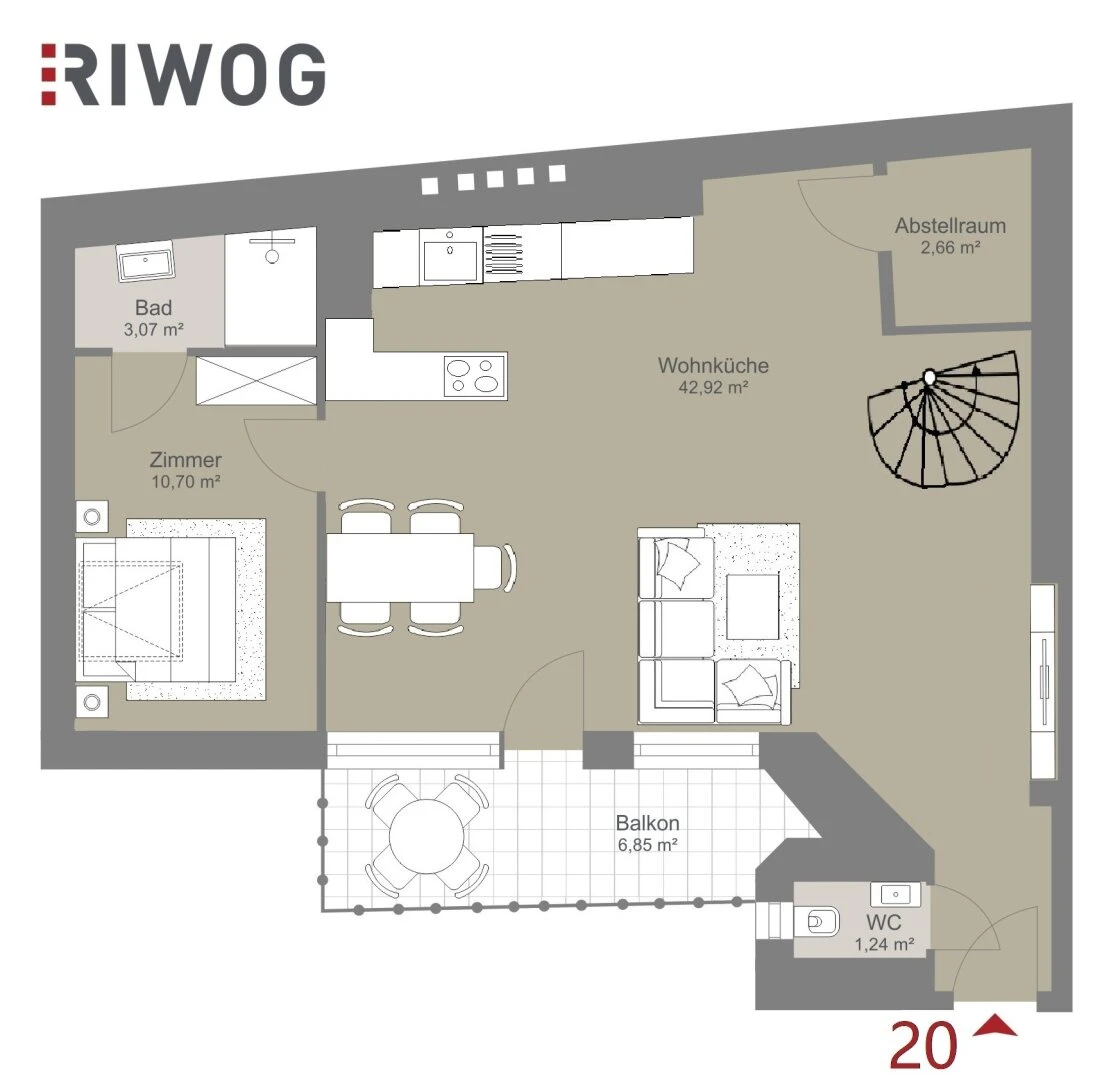 Fast alle Wohnungen sind mit einer Außenfläche (Balkon oder Loggia) ausgestattet und beeindrucken durch eine überlegte Planung sowie der hochwertigen Ausführung.