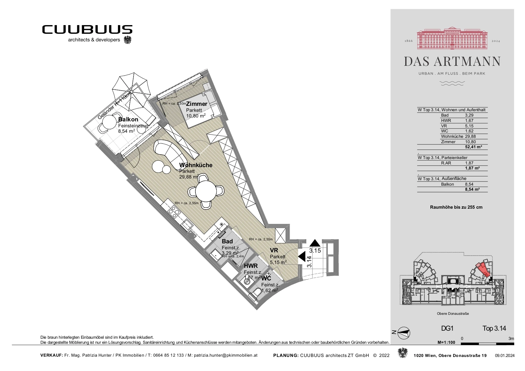 In urbaner Lage im 2. Bezirk, zwischen Augarten und Wiener Innenstadt, entsteht im denkmalgeschützten Backsteingebäude in der Oberen Donaustraße 19 ein Wohnbauprojekt mit exklusiven Apartments: DAS ARTMANN.