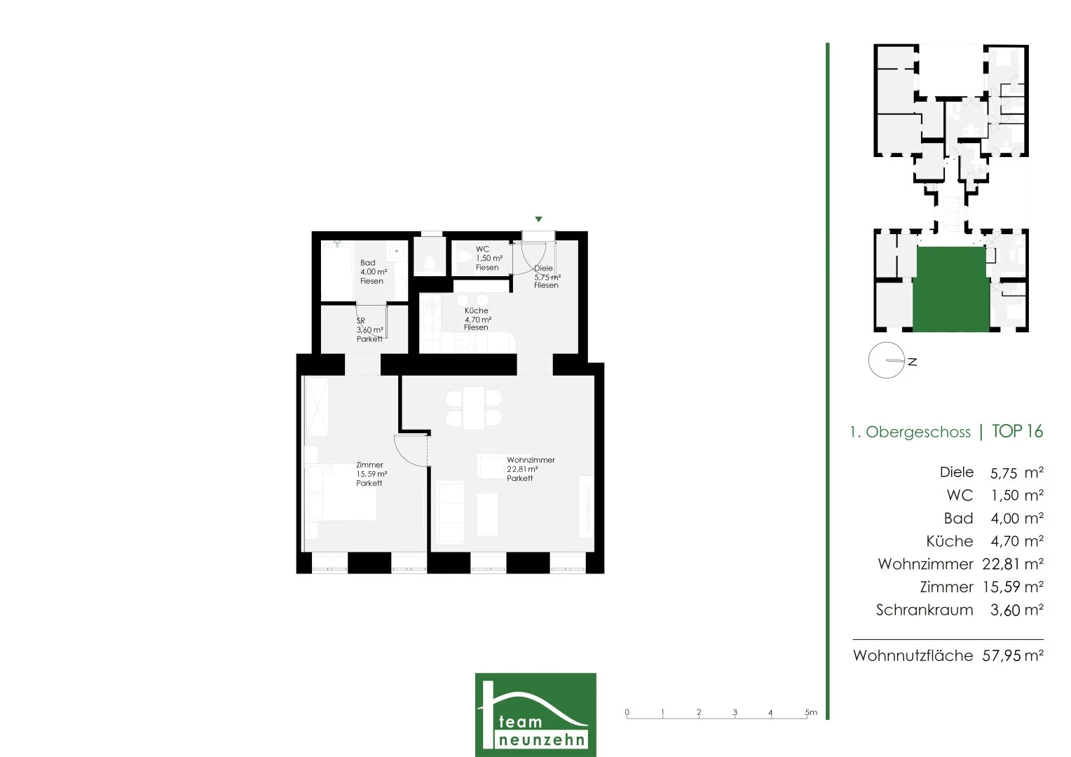 In Summe wurden 11 Wohnungen und 2 Büros, aufgeteilt auf 7 Ebenen (Souterrain / EG / 1.OG – 3.OG / 1-2. Dachgeschoss) errichtet. Die Wohnungen weisen Flächen von ca.31m2 – 78m2 (1-4.Zimmer) und die Büros Flächen von 35m2 und 38m2 auf. Der Großteil der Wohneinheiten verfügt über eine Freifläche (Balkon, Garten) von mindestens ca. 3,60m2 und erweitert somit den gefühlten Wohnbereich.