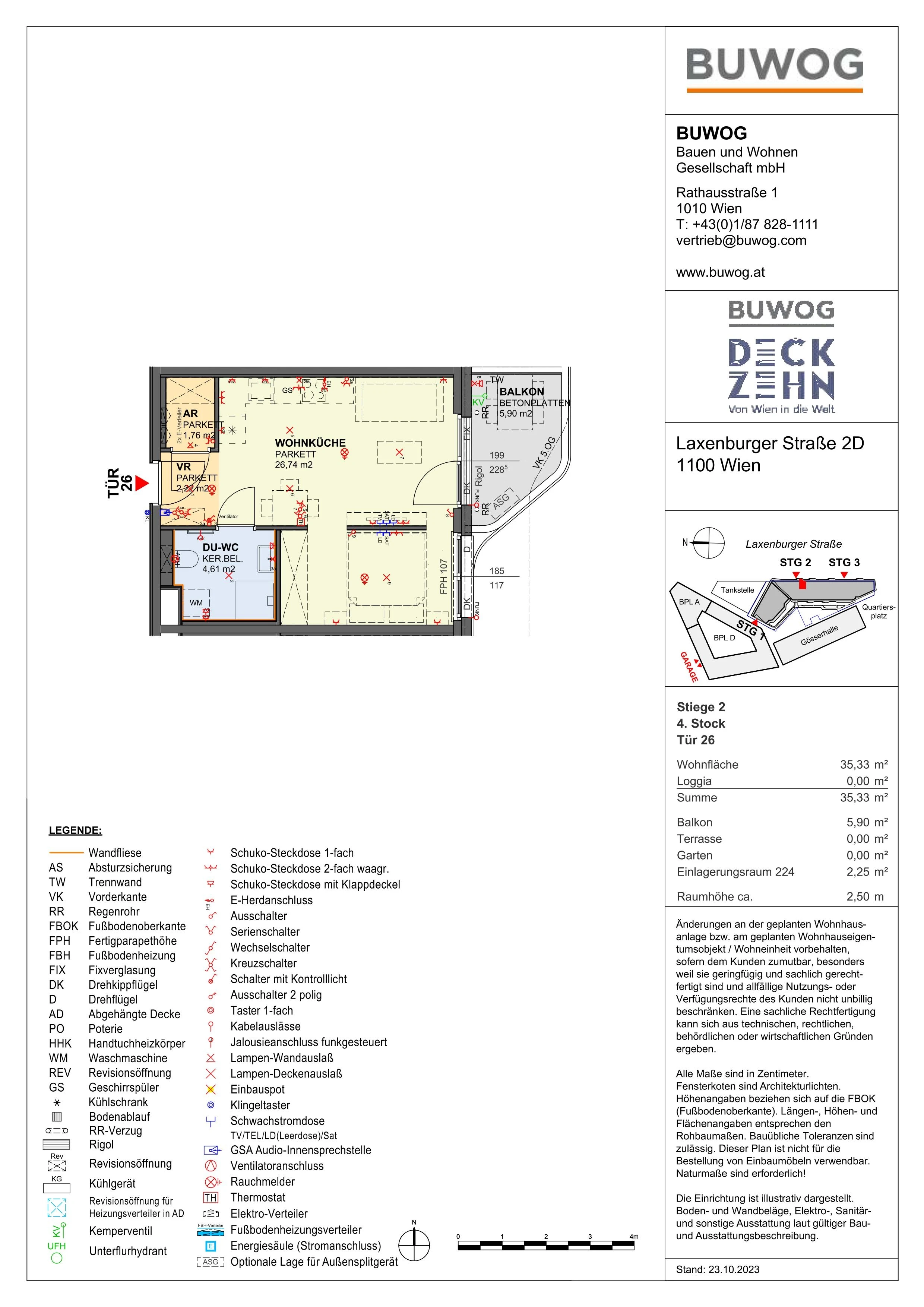 Die Anlage besteht aus 3 Stiegen mit insgesamt 229 Wohnungen, 3 Geschäftslokalen und 78 PKW- Stellplätzen in einer eingeschossigen Tiefgarage. Der Neubau in der Laxenburger Straße 2D Stiege 1 verfügt über 11 Geschoße (EG, 1.-11.OG) mit 91 Wohnungen und die Stiege 2 & 3 verfügt über 9 Geschoße (EG, 1.-8.OG) mit 138 Wohnungen samt direktem Zugang pro Stiege in die Garage im 1. Kellergeschoß. Die Zu- und Abfahrt der Tiefgarage erfolgt über die Nachbarliegenschaft. Jede Stiege verfügt über ein Stiegenhaus und einen Personenaufzug. Die Einlagerungsräume der Wohnungen sind in dem Kellergeschoß angeordnet. Die erforderlichen infrastrukturellen Räumlichkeiten (Technikräume für Strom-, Wasser-, Kälte-, Wärme und Medienversorgung) sind ebenfalls im Kellergeschoß situiert. Im hinteren Außenbereich befindet sich ein Kleinkinderspielplatz.